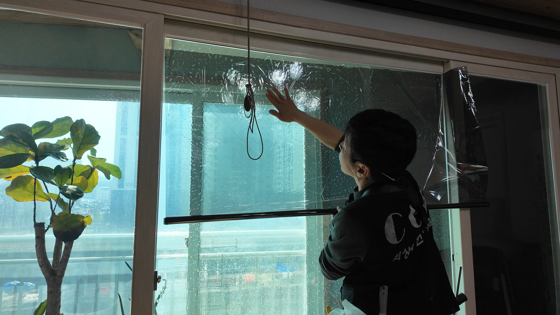 쉽게 말하면 유리창에 기능성 필름 붙이는 작업이에요.